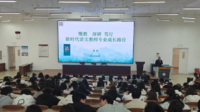 3月27日下午,文学院在大同楼A115报告厅举行“大同名师讲堂”系列讲座。本次讲座分别围绕“新时代语文教师专业成长路径”与“儿童语言经验的习得与培育”展开。讲座由院长万连增主持,2024及语文教育专业、2025级汉语言文学专业全体学生及相关专业教师参加学习交流。第一场讲座《慢教·深研·笃行:新时代语文教师专业成长路径》,由灌云洋桥农场小学校长、全国作文教学先进个人、全国卓越名师工作室主持人、我校优秀校友潘胜主讲。潘胜结合自身三十余年一线教学与研究经历,系统阐述了“慢语文”教育理念的缘起、发展与当代价值。他从“乐教”“深研”“笃行”三个维度出发,分享了在教学实践中如何实现从“教是为了更累地教”到“教是为了不教”的理念转变,强调教师应尊重儿童认知规律,在“慢读、慢思、慢说、慢写”中促进学生语文素养的全面提升。讲座中,他还介绍了“慢语文”从1.0版到4.0版的研究演进历程,特别是在AI赋能教学背景下,如何实现“智能+人文”的融合育人。潘胜以自身从乡村教师到研究型教师的成长经历为例,鼓励在场学子坚守教育初心,持续学习、反思与创新,走出一条属于自己的专业发展之路。 第二场讲座《儿童语言经验的习得与培育》,由百禄镇中心小学党支部书记校长、省首届师德先进个人、省卓越校长创新人才培育对象、省基础项目领衔人李亚东主讲。李亚东从美国语言学家克拉申的“习得与学得”理论出发,结合叶圣陶等教育家的观点,深入剖析了儿童语言经验形成的内在机制。他围绕“语言经验”的概念内涵,区分了“一般经验”与“典型经验”的不同类型,并强调在语文课程中,教师应通过任务驱动、情境创设、开放解读等方式,引导学生在真实语言实践中积累、建构并运用个体语言经验。讲座中,李亚东提出了“把握‘度’、涵养‘趣’、追求‘格’”的教学主张,结合《慈母情深》《太阳》《猎人海力布》等具体教学案例,生动展示了如何在语言与实践的平衡中找准起点,在情境与思维的互动中品味过程,在情感与价值的交融中升华境界。他强调,儿童语言经验的培育不仅是语言能力的提升,更是精神成长的历程。 两场讲座内容翔实、观点鲜明,既有理论高度,又贴近教学实际,现场反响热烈。本次讲座是学院“大同名师讲堂”系列活动的组成部分,旨在通过邀请一线名师、教育专家进校分享,拓宽师范生教育视野,提升专业素养,为培养新时代高素质语文教师提供有力支撑。(通讯员 王星楠)